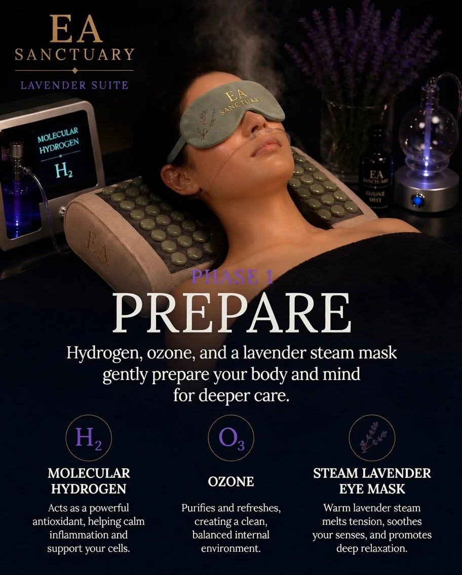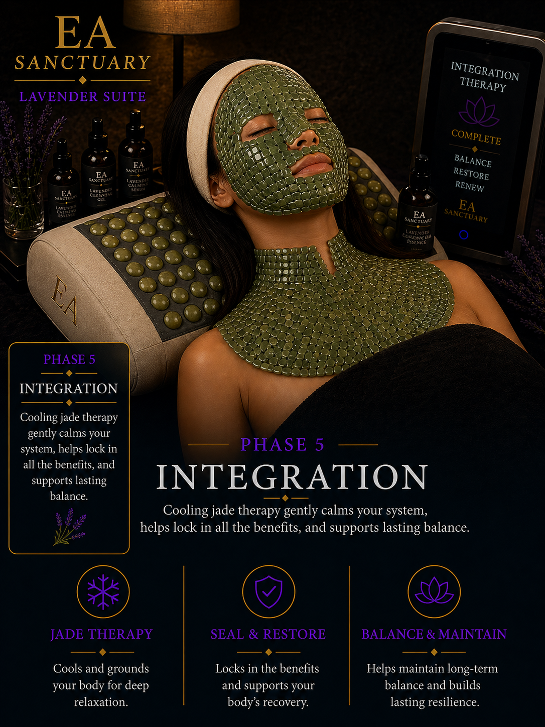 Inside the Lavender Suite™ at EA Longevity Sanctuary™, EA Signature Radiance Protocol™ is our signature 5-phase cosmetic acupuncture experience, thoughtfully designed to combine facial refinement, intentional sensory layering, and precision-led supportive care.